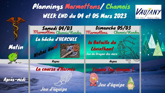 C'est les vacances!! Il est temps de retrouver les copains et les animateurs pour un été de folies! N'oubliez pas l'équipement de l'été🌞 : sac a dos gourde casquette lunettes crème solaire chaussures et tenues adaptées aux activités Site du Pôle enfance 😀Groupe des marmottons-marmochams (3ans à - de 6 ans) 😀Groupe des Chamois ( 6ans à - de 7.5 ans) Site d'été (à coté du pôle enfance) 😁 Groupe des Ptits randos ( 7.5ans à - de 9 ans) 😁Groupe des randonneurs (9ans à - de 11.5 ans) 😁Groupe des alpis ( de 11.5 ans à 15 ans)